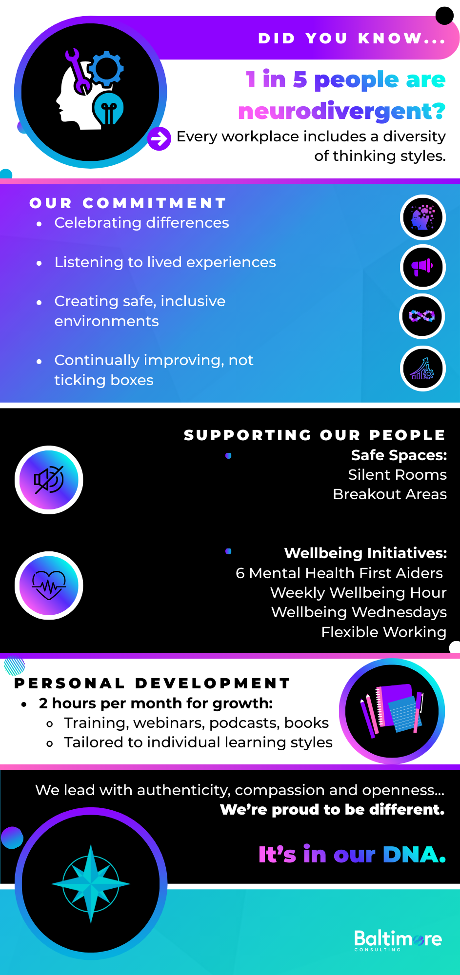 Did you know that 1 in 5 people are neurodivergent? This week, we’re recognising Neurodiversity Celebration Week at Baltimore Consulting; an important reminder that every workplace includes a wide range of thinking styles and it’s our responsibility to create environments where everyone feels valued, understood, and supported.